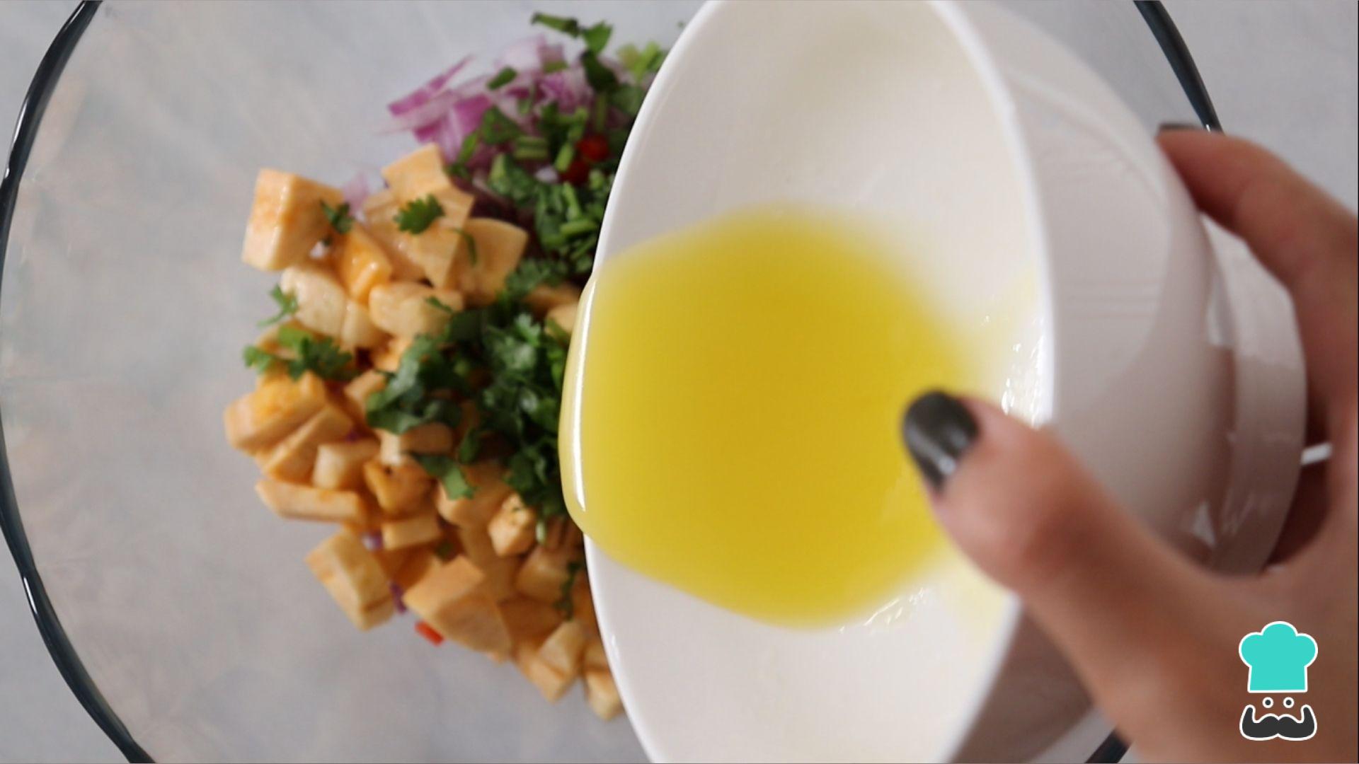 Em outra tigela esprema o limão e acrescente o azeite. Misture bem.