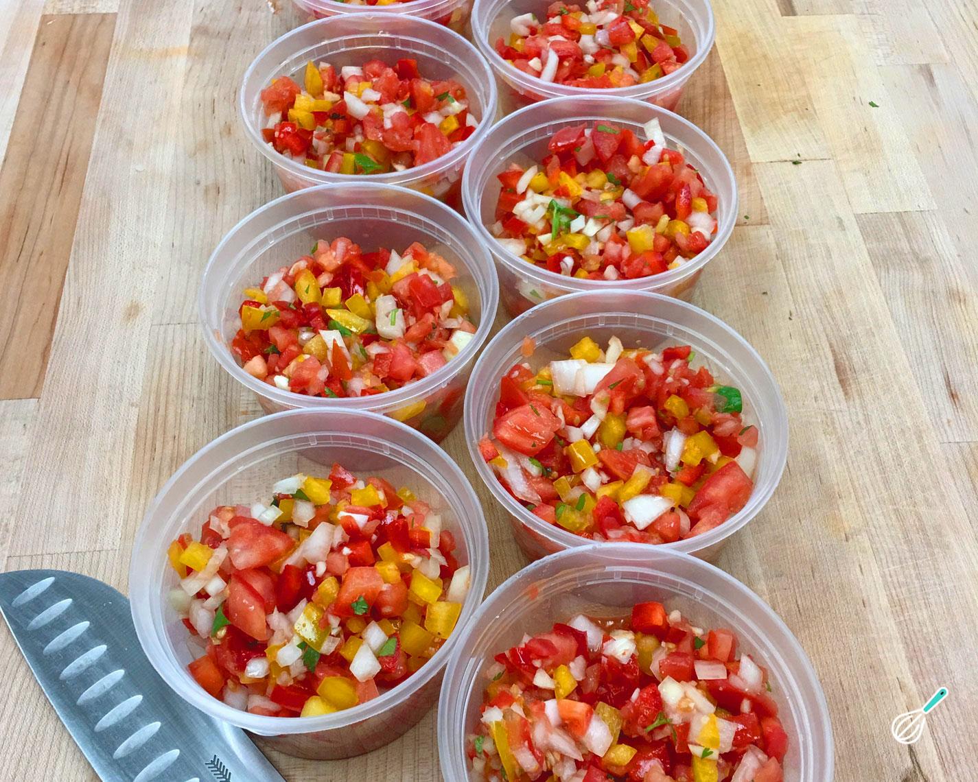 Na hora de preparar vinagrete para 20 pessoas a dúvida principalmente está na quantidade de ingredientes. Neste caso calculamos a quantidade de ingredientes de vinagrete para servir cerca de 200g de vinagrete para cada pessoa.