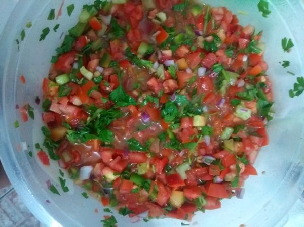 Depois do tempo indicado seu vinagrete simples para churrasco está pronto e, como pode ver, mais simples não poderia ser!