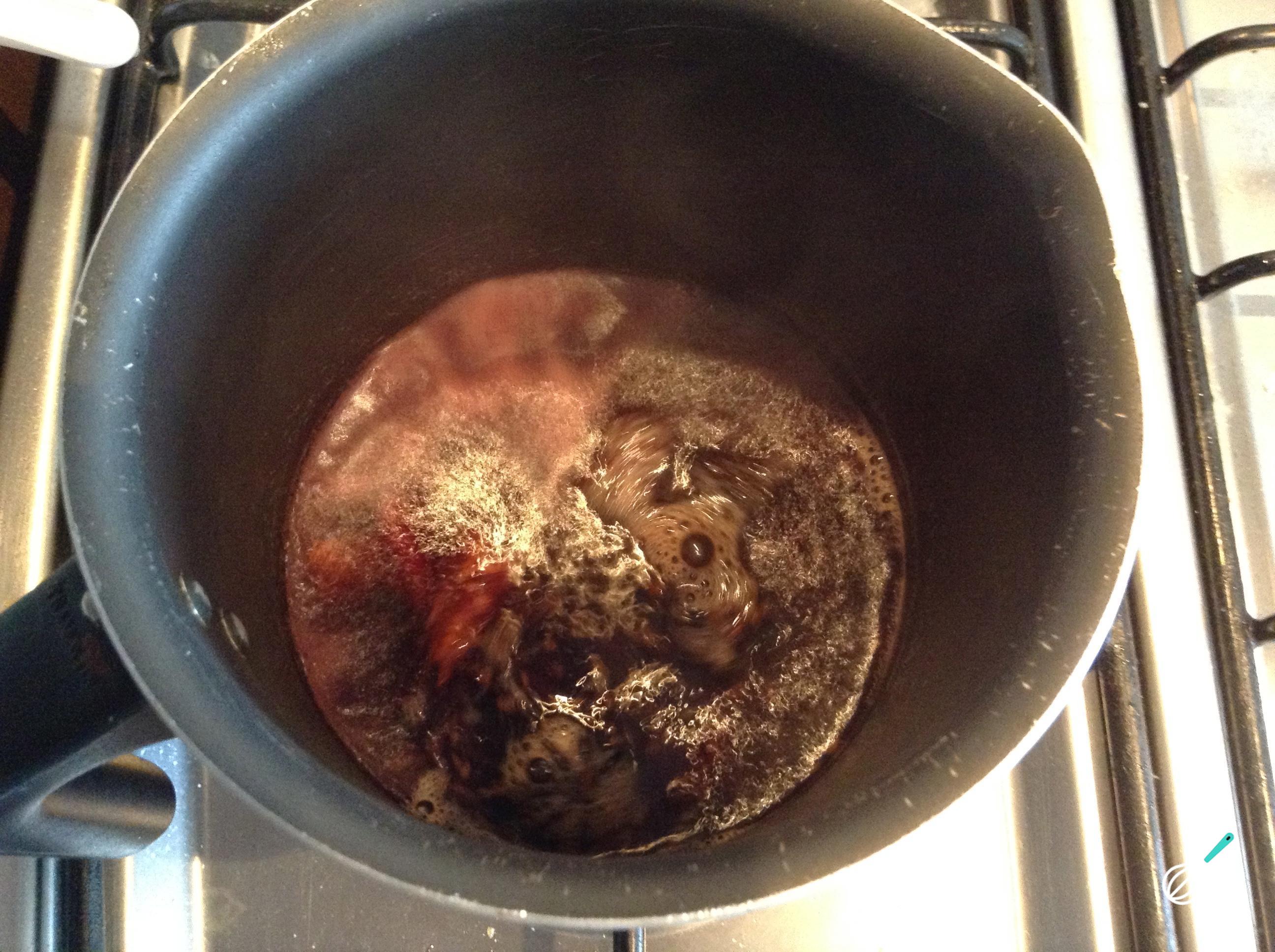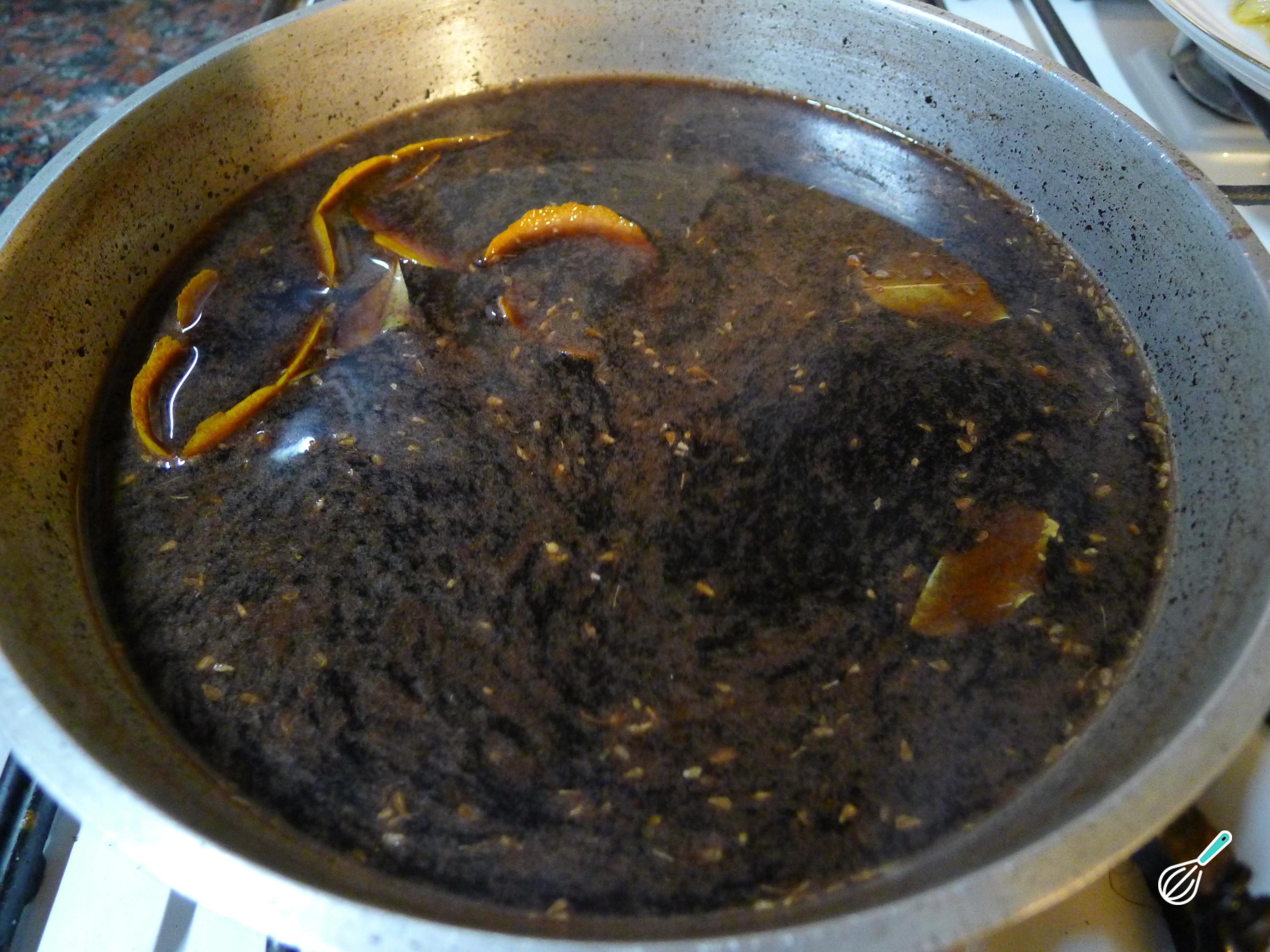 Dica: Não adicionamos o vinho todo para que o álcool não evapore quando a mistura ferver.