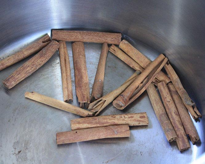 Coloque no fogo alto uma panela com a água, o açúcar, a canela, o cravo e o gengibre. Tampe e deixe ferver por 10 minutos - como se estivessem preparando um chá.