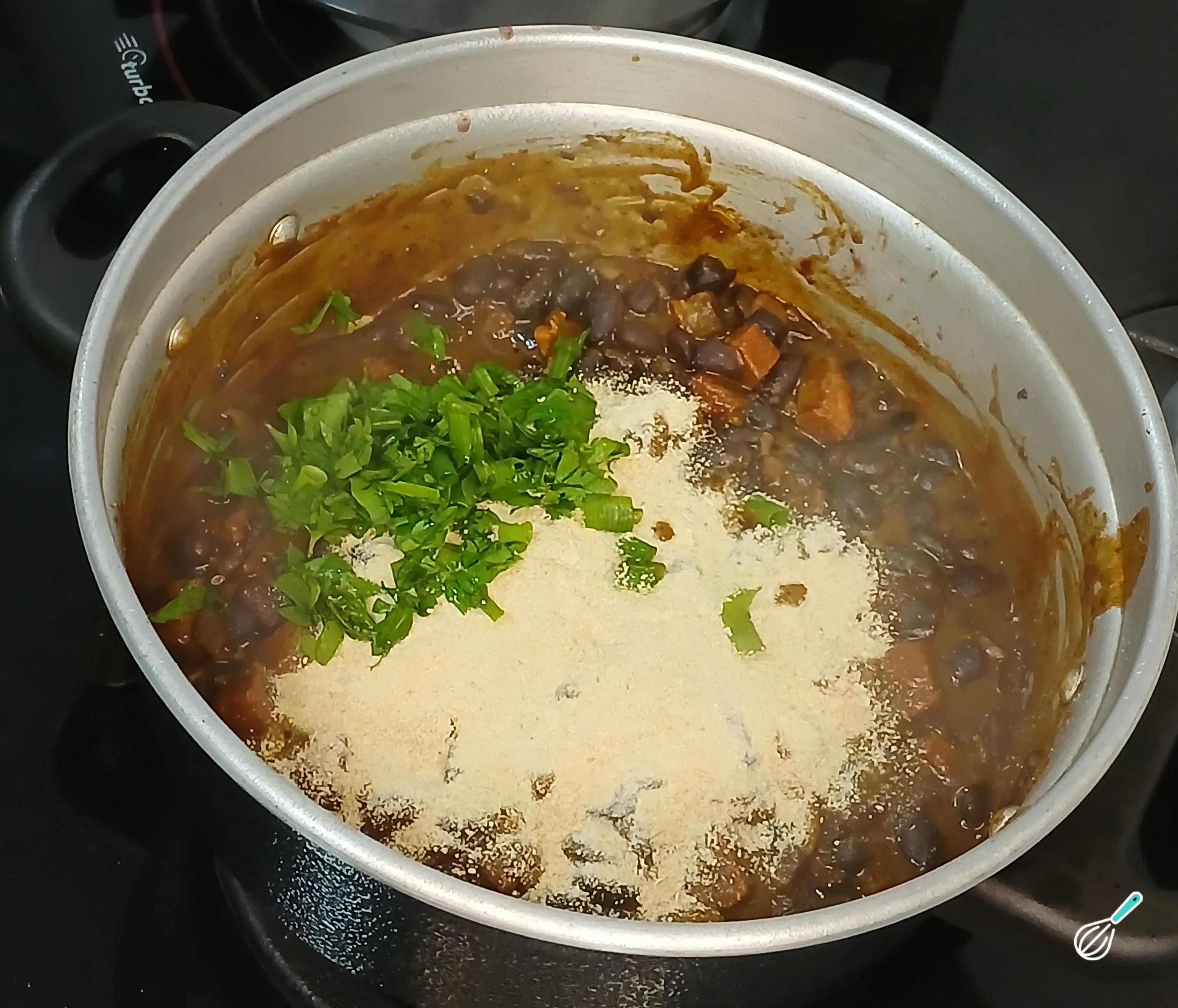 Dica: Misture o feijão com uma colher de pau e tente escorrer o máximo possível. Se preferir, bata o feijão no liquidificador.