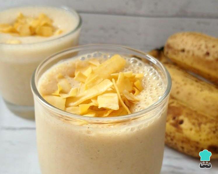 Dica: Se você não conseguir bater até obter uma batida de banana bem lisinha, passe por uma peneira. Se a mistura estiver muito espessa adicione um pouco mais de bebida de aveia.