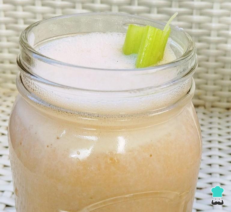 Esta receita de vitamina de banana que compartilho aqui no TudoReceitas é perfeita para tomar antes e sobretudo depois do treino, porque é preparada com vários ingredientes que ajudam na recuperação muscular: banana, pasta de amendoim, cenoura, gengibre e aipo.