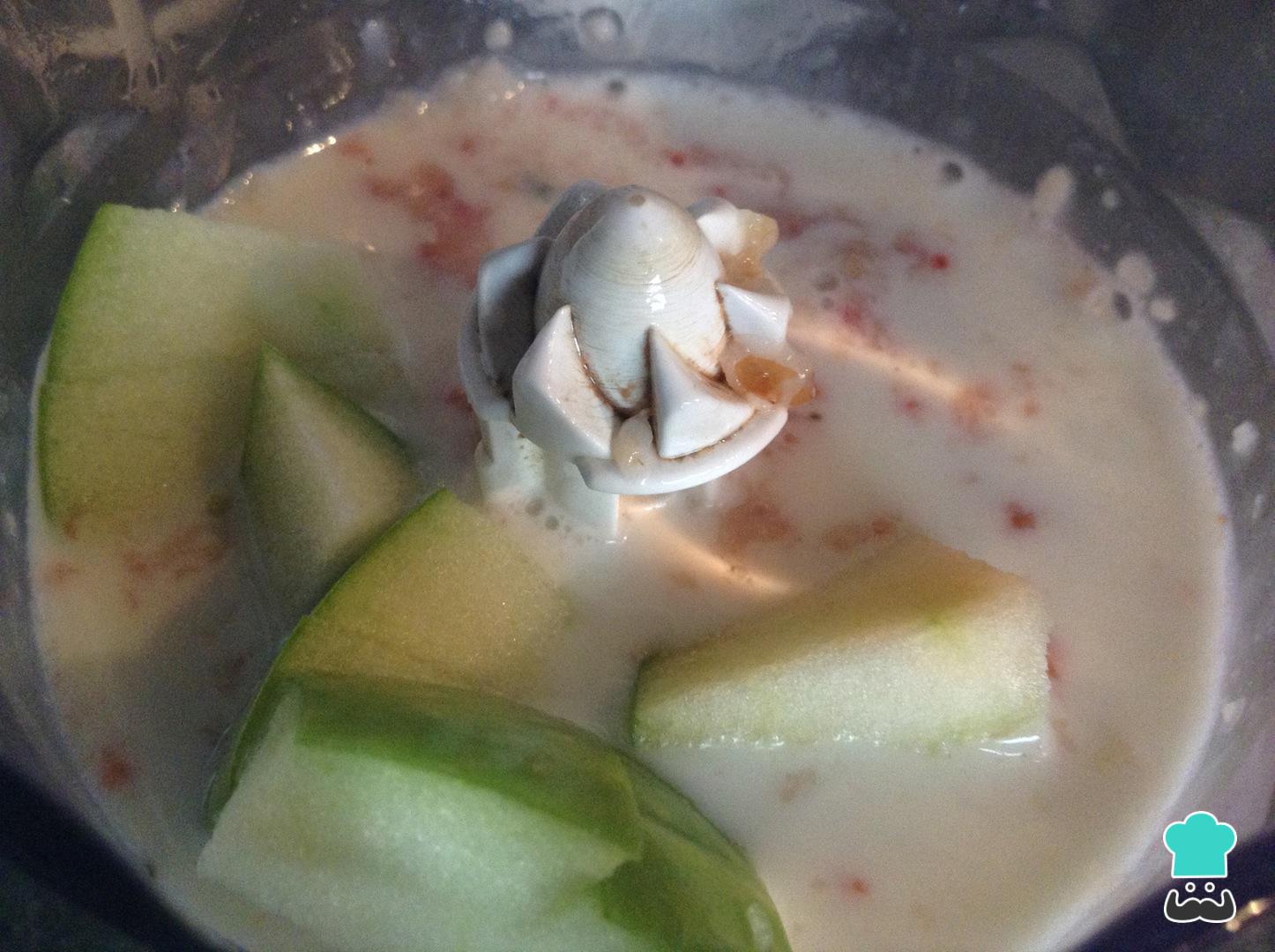 Lave as maçãs e corte em pedaços. Adicione aos ingredientes anteriores junto com o leite de amêndoas, e bata tudo muito bem.