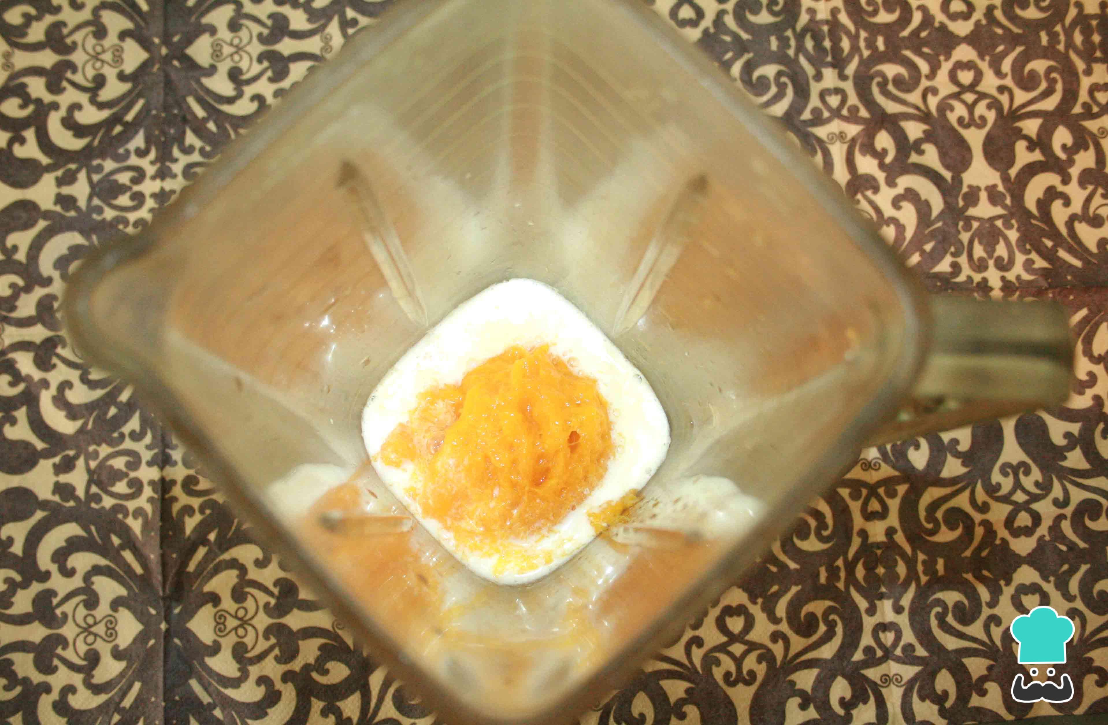 Coloque no liquidificador o leite e a manga e bata até misturar muito bem.