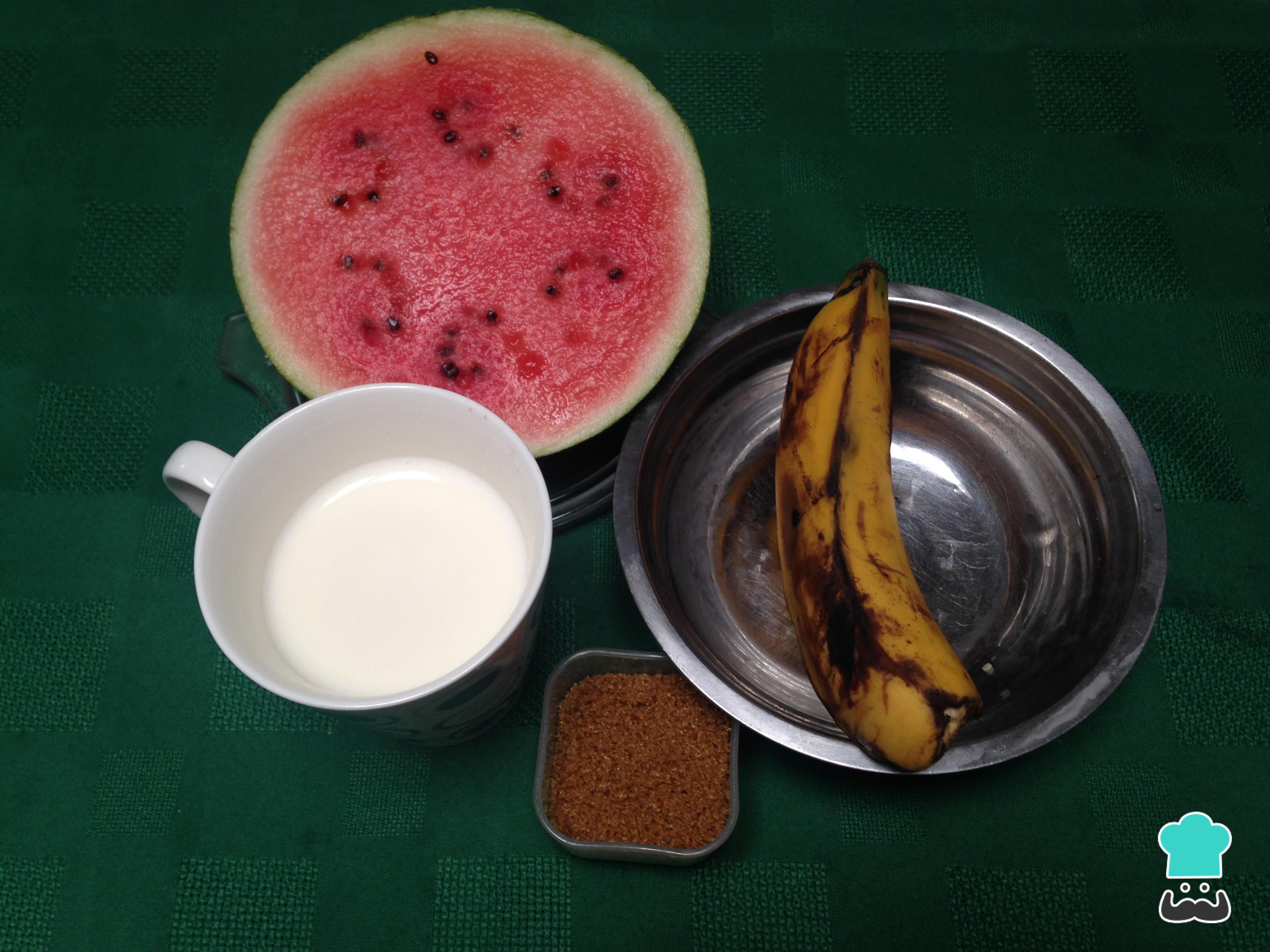 O primeiro passo desta deliciosa vitamina de melancia e banana é reunir os ingredientes.