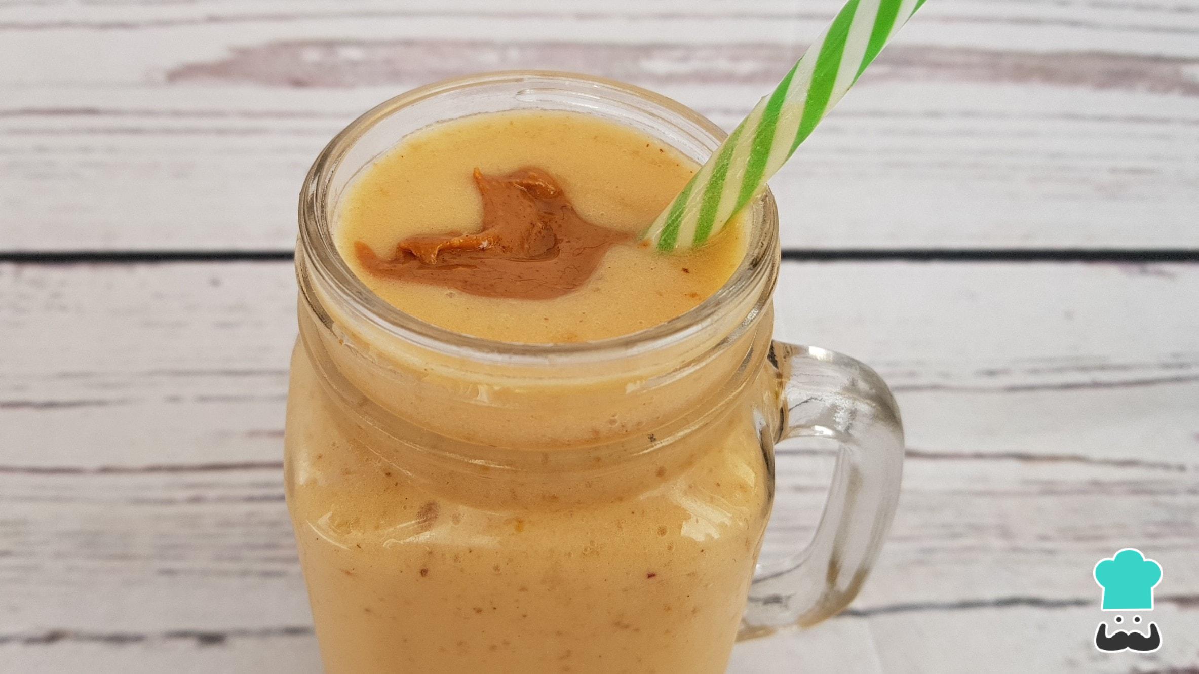 Verta este smoothie de banana em copos ou garrafas e decore com um pouco de pasta de amendoim. Está pronta sua super vitamina super energética! Desfrute e bom apetite.