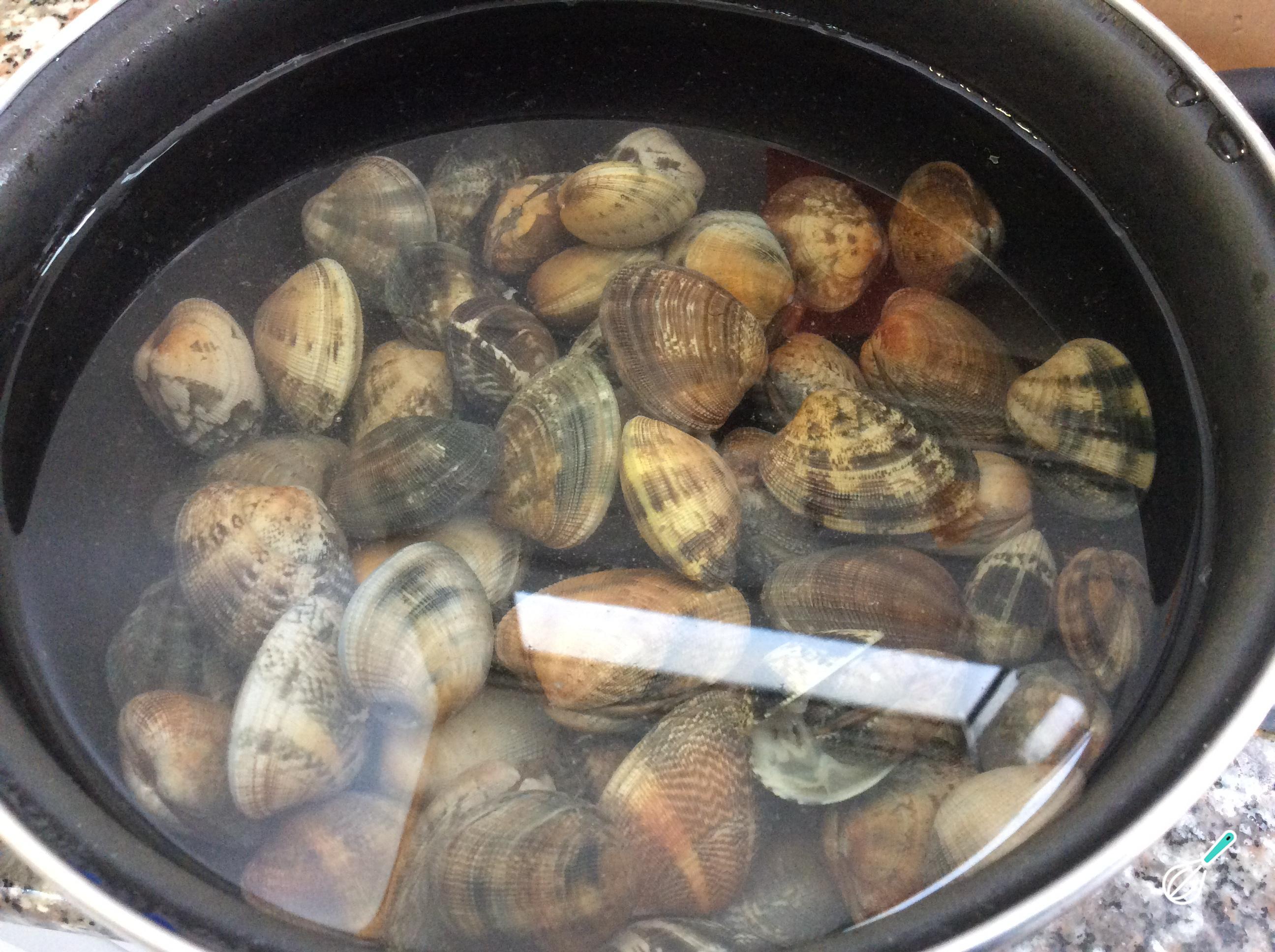Dica: Após o passo anterior jogue no lixo os vôngoles que não abriram, significa que não estão boas para comer.