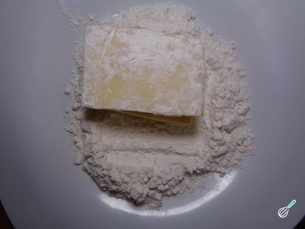 Tome o pequeno sanduíche de queijo e cubra com a farinha de trigo.