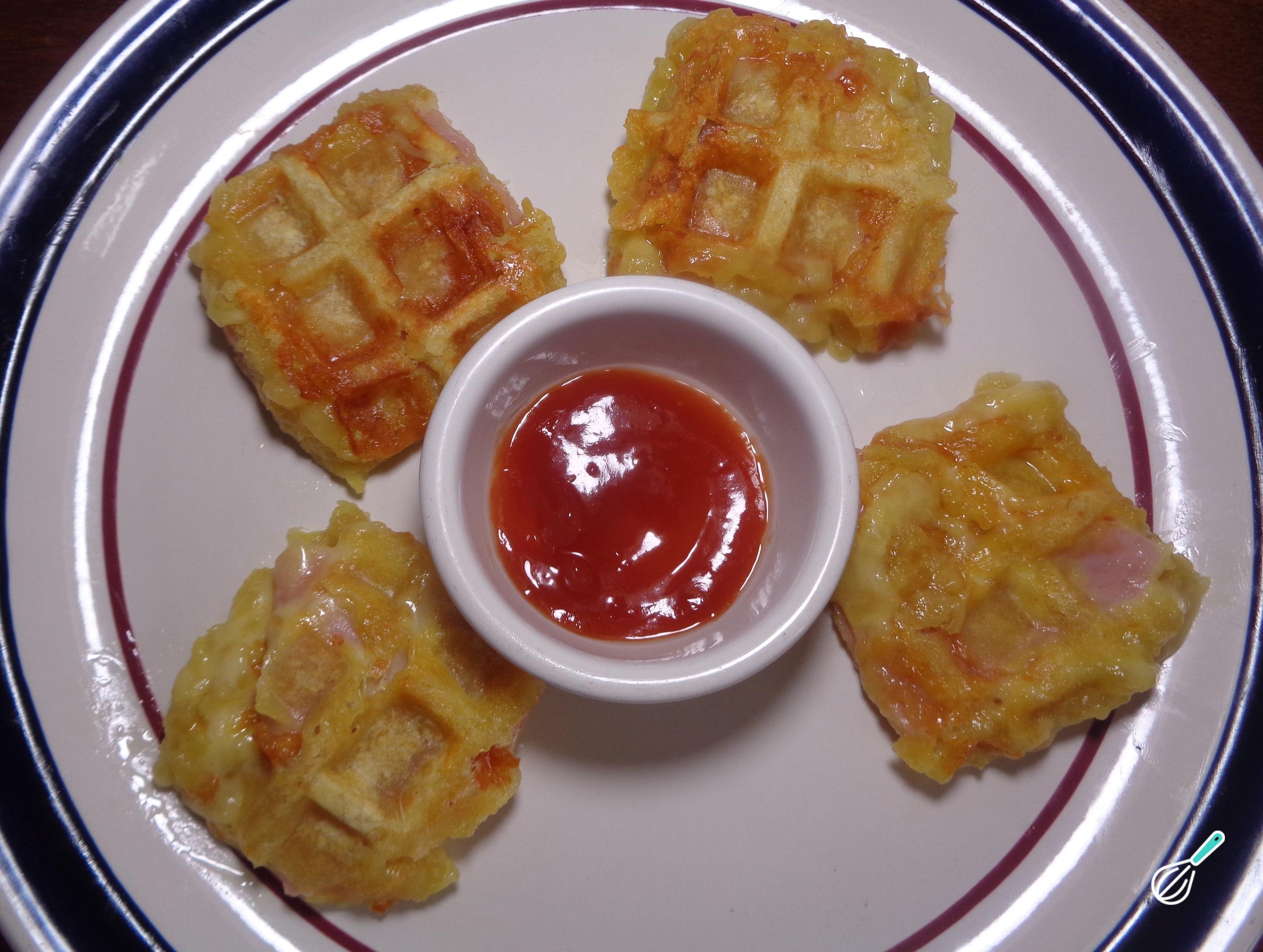 Receita de Waffle de queijo e presunto