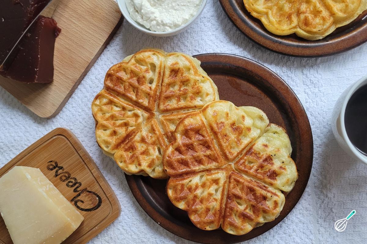 Se você tem uma máquina de waffle, que tal inovar o waffle tradicional e fazer um waffle salgado? Esse waffle salgado com polvilho mistura waffle e pão de queijo trazendo uma receita sem glúten, rápida e prática, perfeita para variar o café da manhã ou lanche.