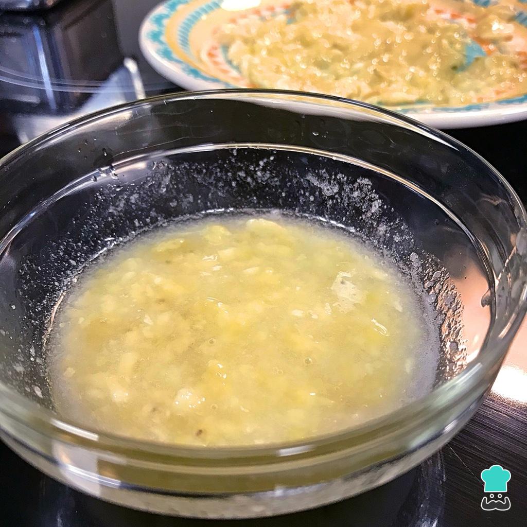 Comece misturando a água com a banana amassada. Essa mistura vai substituir o ovo nesta receita de waffle sem glúten, sem leite e sem açúcar que é também válida para quem segue uma alimentação vegetariana e vegana.