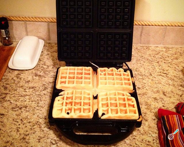 Retire os waffles quando estiverem prontos e repita até esgotar toda a massa de waffle.