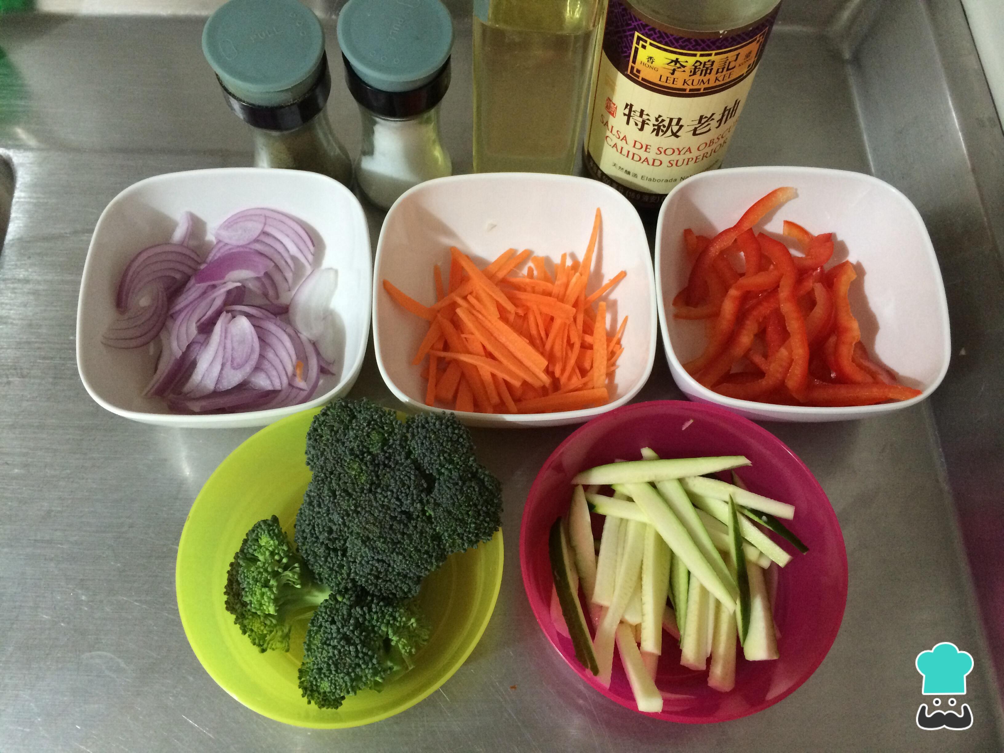 Antes de preparar esta receita saudável de wok de legumes, o primeiro passo é reunir todos os ingredientes.