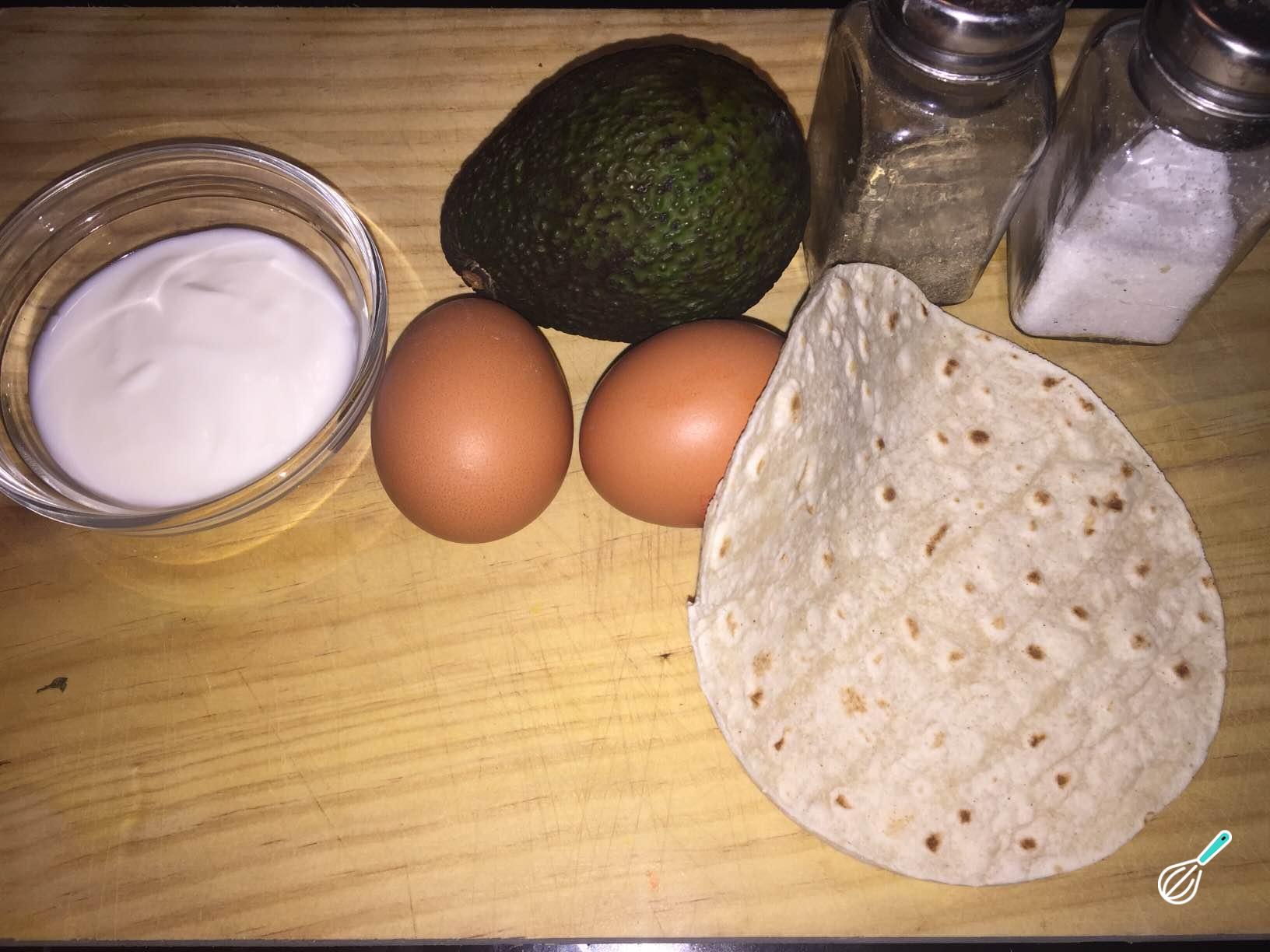Para começar esta receita de wrap com abacate e ovo, junte todos os ingredientes necessários.
