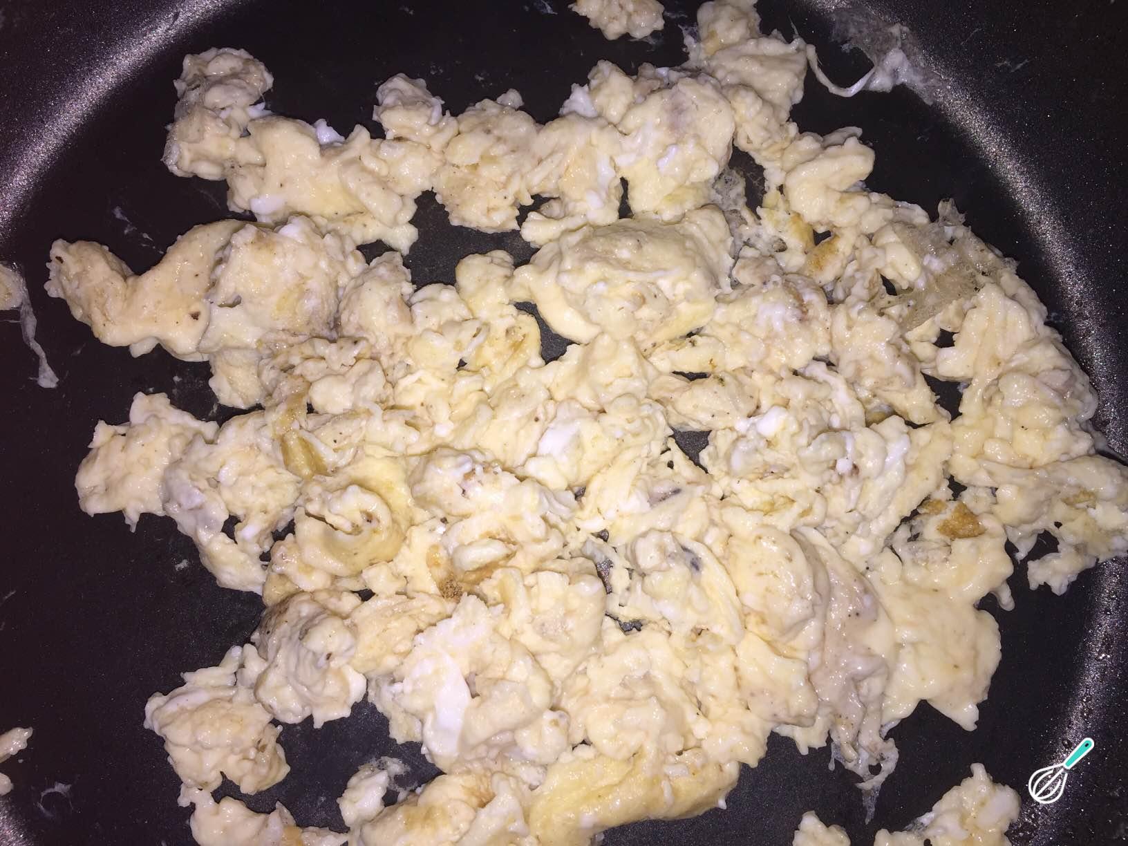 Retire, os wraps da frigideira e faça os ovos mexidos.