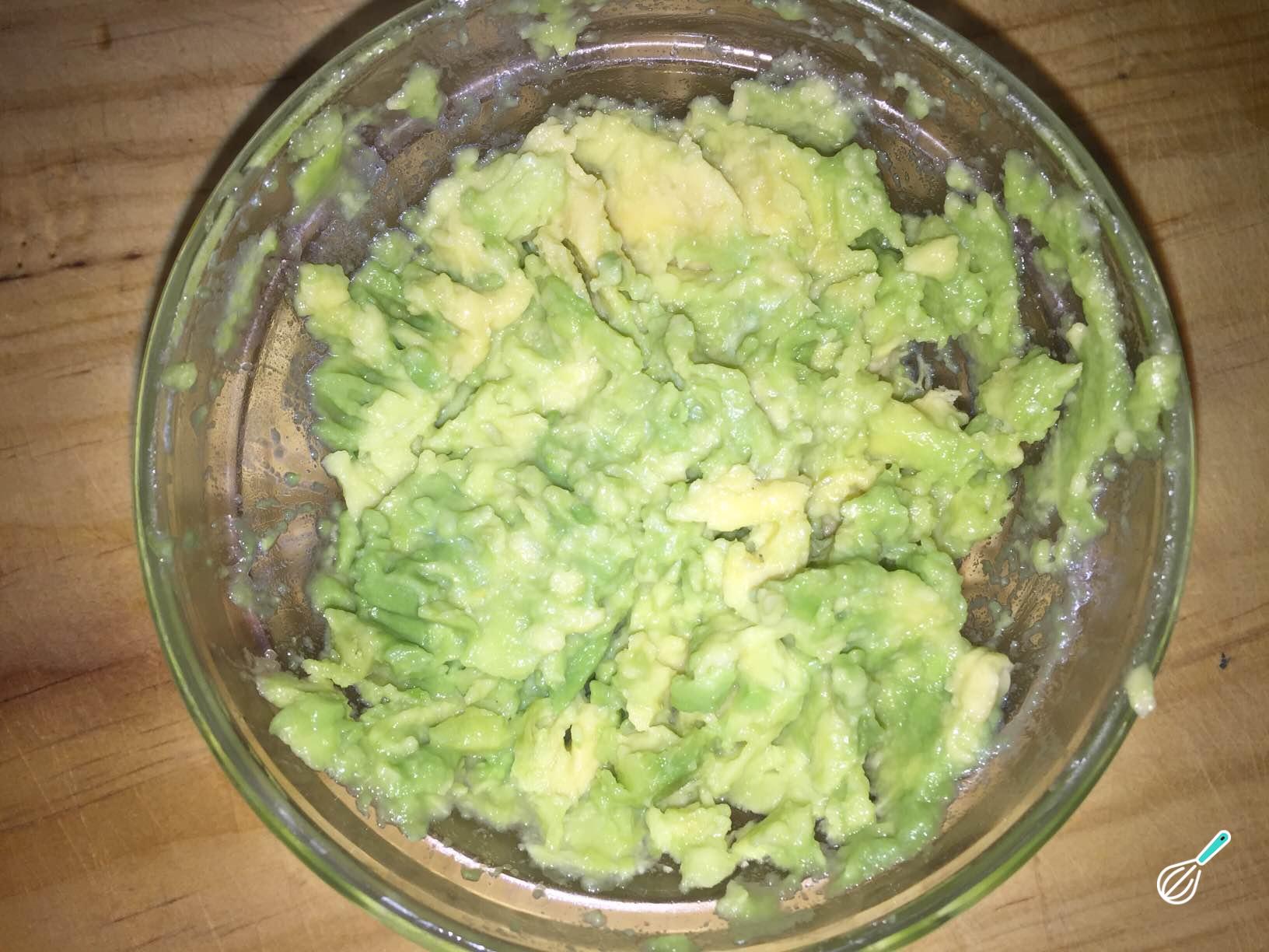 Com a ajuda de um garfo, esmague o abacate.