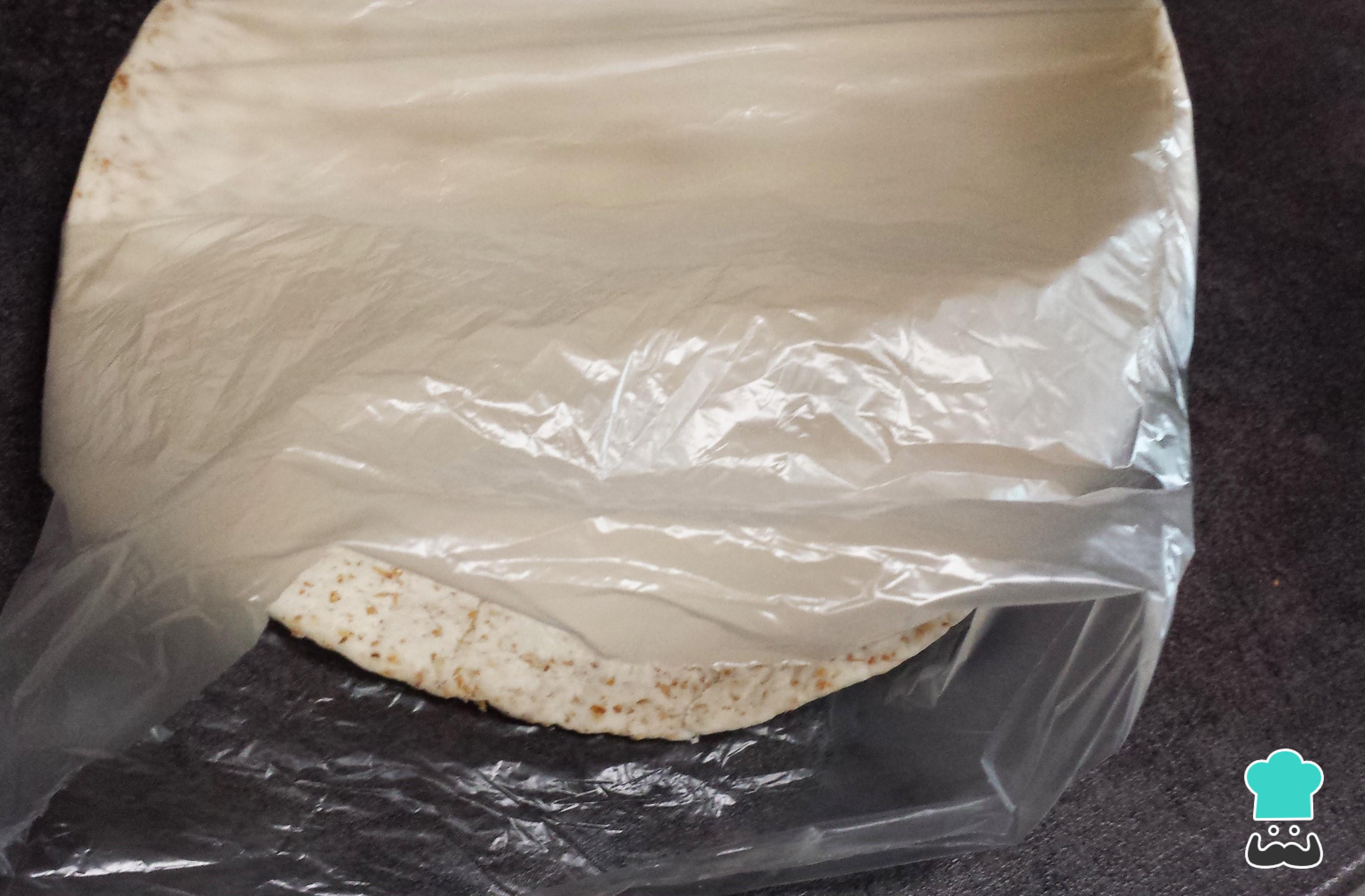 Com o recheio pronto, coloque a tortilha em um saco plástico e esquente no microondas por 30 segundos. Você pode usar qualquer tipo de tortilha, mas eu recomendo as tortilhas de milho porque não contêm glúten.
