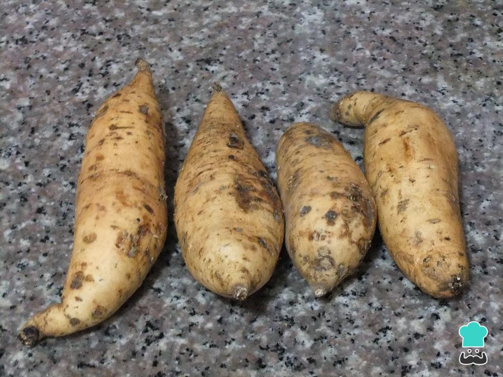 Para preparar esse xarope de batata yacon em casa comece por lavar e descascar as batatas.