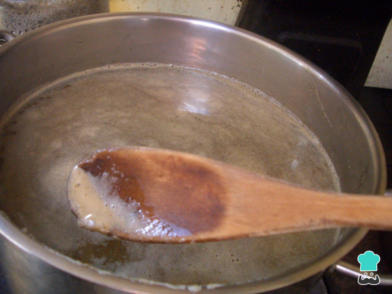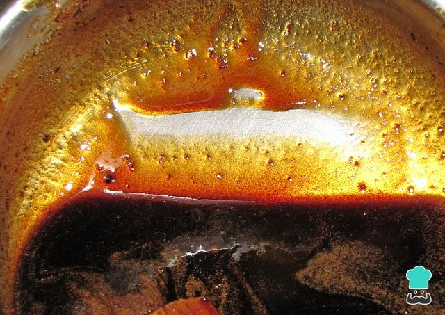 No dia seguinte volte a ferver o suco da batata yacon. Ele irá liberar mais espuminha, que você deverá continuar tirando. Quando o suco escurecer e ganhar aroma de melaço, desligue o fogo e deixe esfriar novamente.