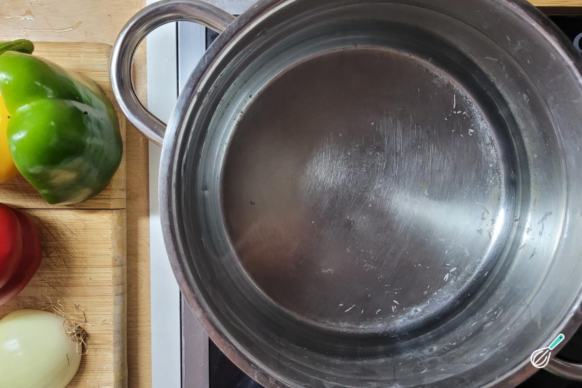 Antes de começar, coloque uma panela com água para esquentar para cozinhar o macarrão. Deixe para colocar o sal depois que a água ferver. Assim a água ferve mais rápido.