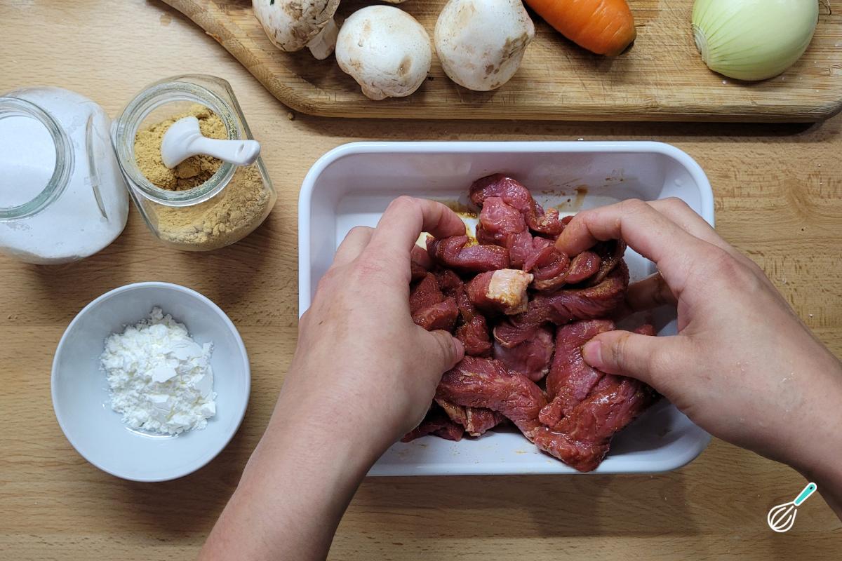 Misture bem para que toda a carne fique envolvida com o tempero e reserve.