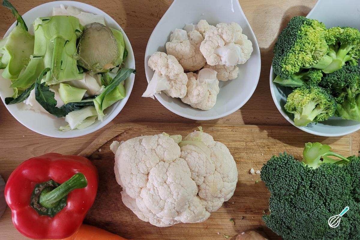Dica: Você pode reservar os talos do brócolis e da couve-flor para fazer sopa ou caldo de legumes.