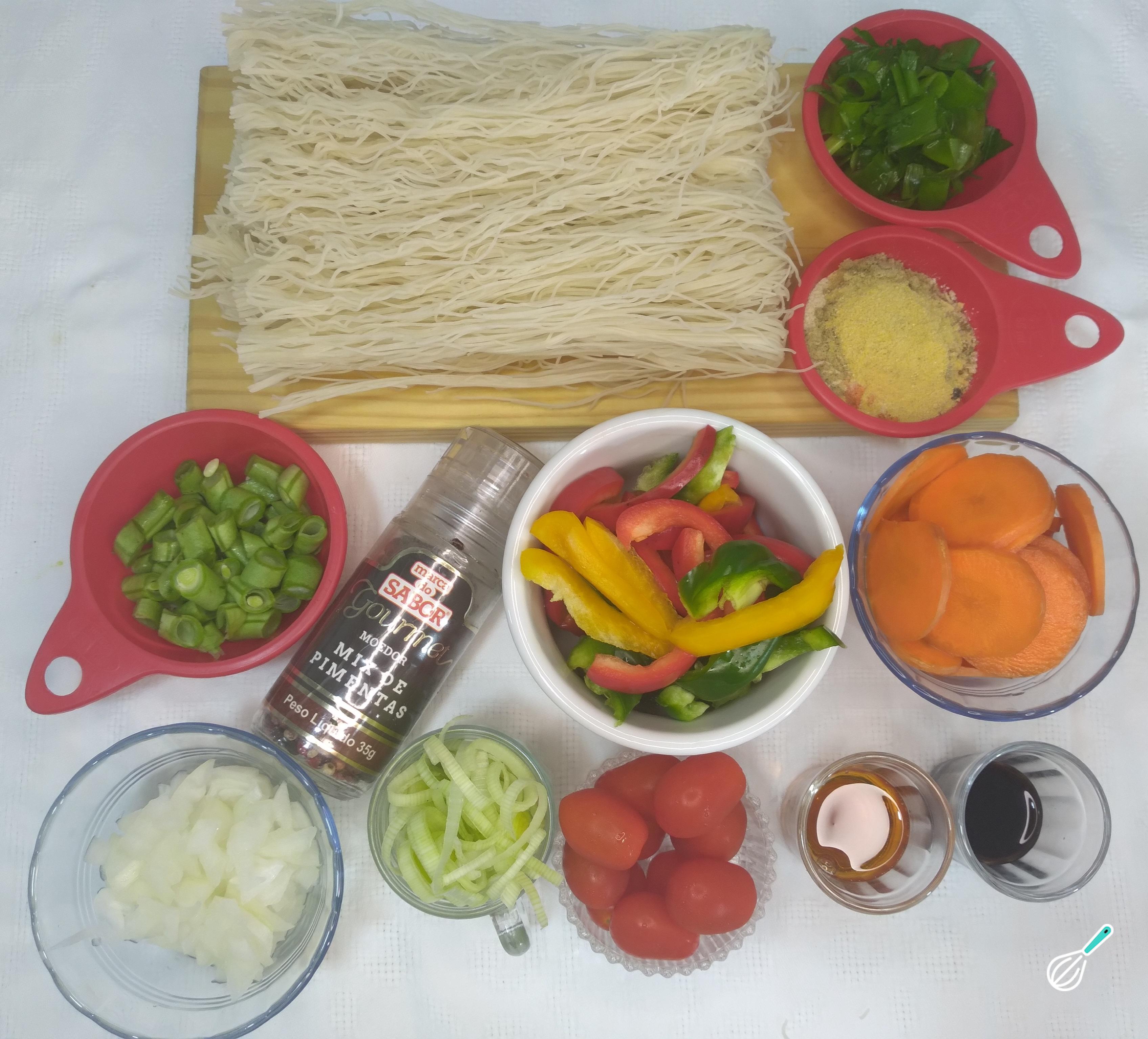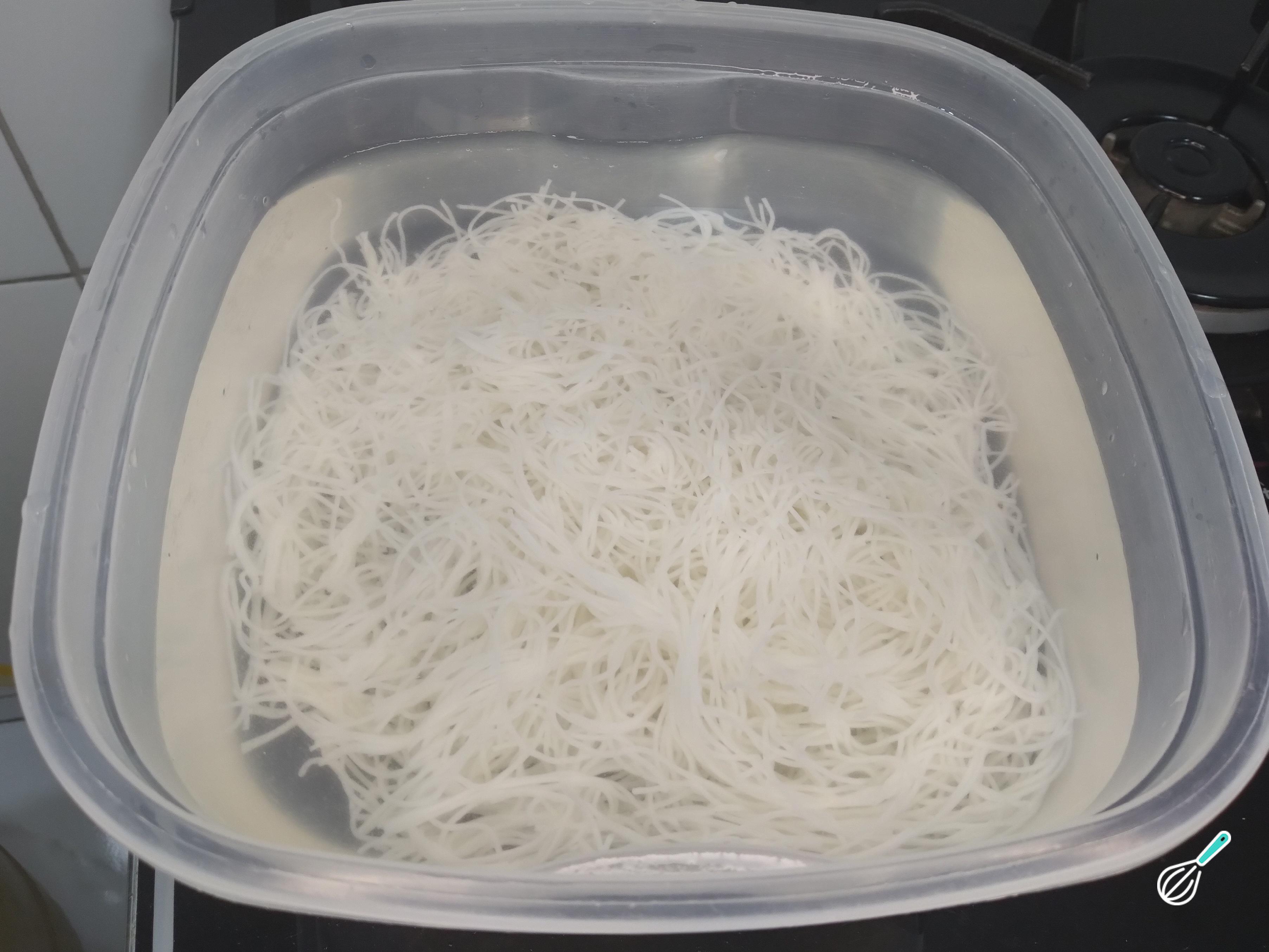 Dica: É importante hidratar o macarrão bifum. Faça o passo a passo conforme a instrução do fabricante.