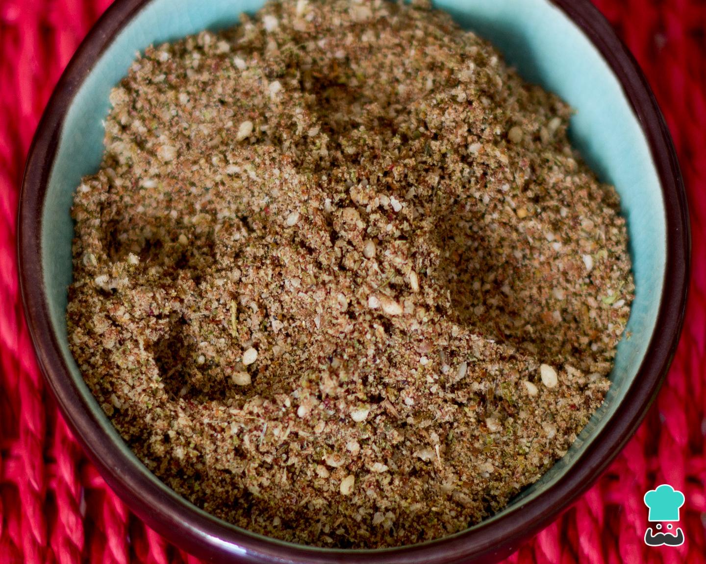 Misture todos os ingredientes indicados nesta receita de zaatar e coloque em um pote bem fechado. O ideal é conseguir um zaatar o mais lisinho possível, por isso use um socador, um moedor de especiarias ou um processador de cozinha para moder tudo o mais fino que conseguir.