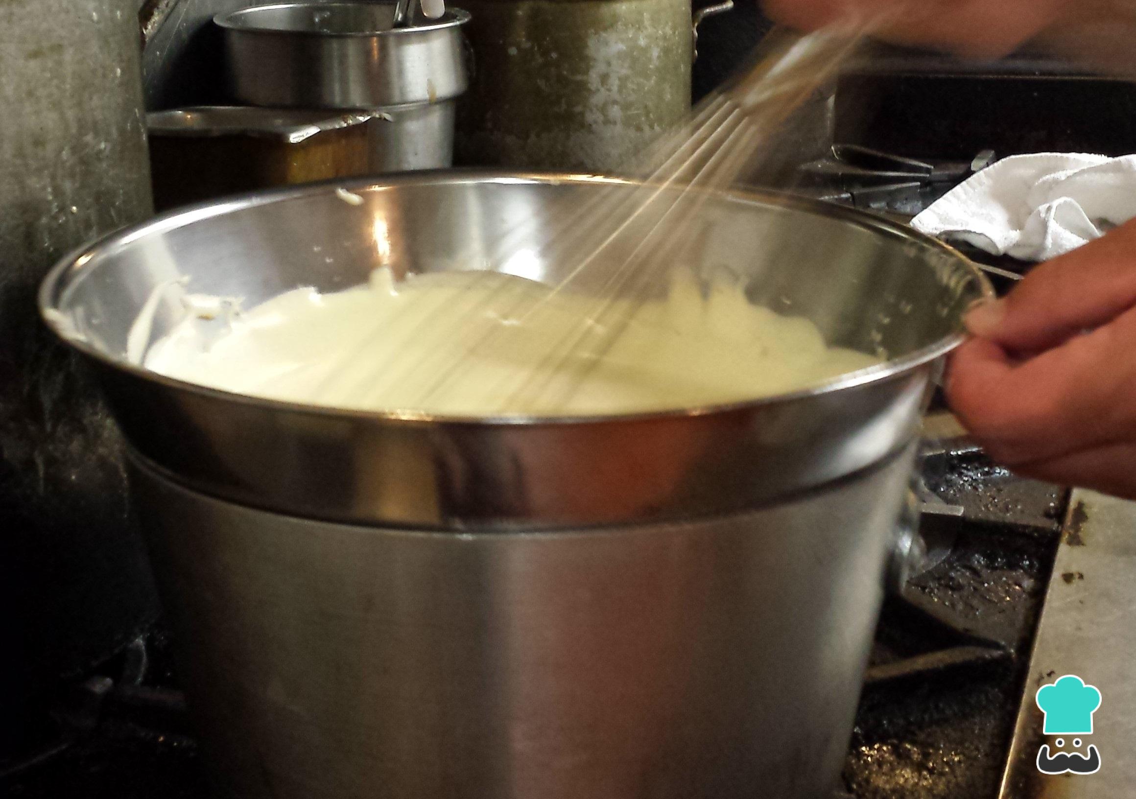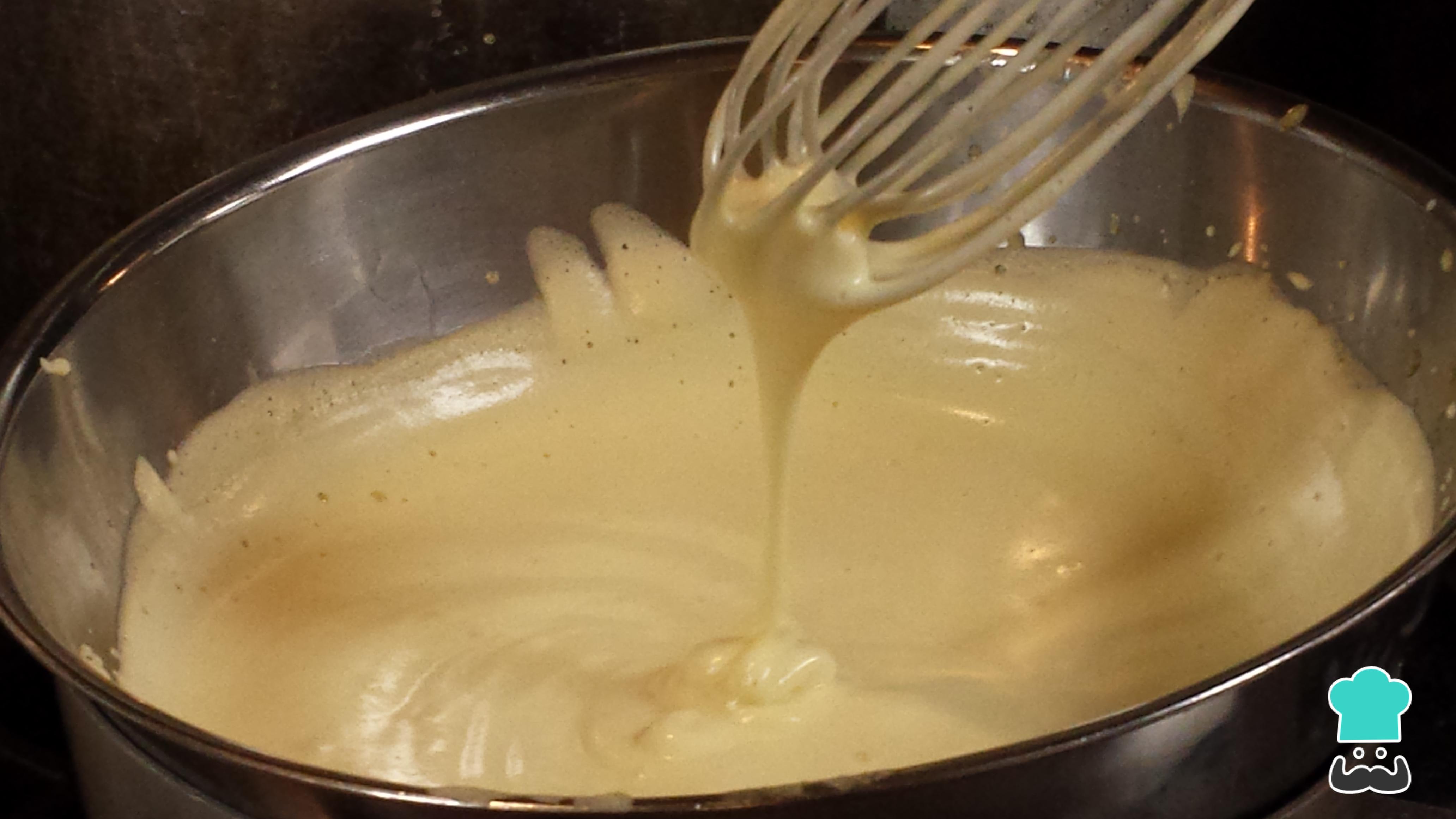 Misture por 7-8 minutos. O ideal é obter um creme claro e bem cremoso, como mostrado na fotografia.
